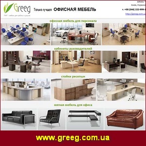 Мебель для офиса 2013. Киев Компания GREEG ™ предлагает: Производство и реализация мебели для офиса. Современные рабочие места для персонала: столы на металлических ногах, роллетные и гардеробные шкафы, стойки ресепшн на заказ. Предприятиям: Офисная мебель люкс-класса. Элитная офисная мебель. Модная белая мебель для офиса. Бюджетная офисная мебель для тендерных закупок госпредприятиями. Роман +38(044)2229991 Киев, ул. Стуса, 35 www.greeg.com.ua |