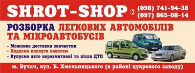 Авторозборка "Shrot - Shop" пропонує БУ запчастини з Європи а саме: Двигуни, КПП, АКПП, Рульові рейки, стартера, генератори, гідропісилювачі, карбіратори, моноінжектори, трампльори, фари, радіатори, компресор кондиціонера, бампера, двері, амортизатори, пружини, стабілізатори, ричаги, щитки приборів, панелі, сідушки, полуося, гітари, рулі, та інші запчастини ходової, кузова, салону до автомобілів: Audi, BMW, Citroen, Daewoo, Ford, Mazda, Mersedes-Benz, Opel, Peugeot, Renault, Skoda, Volkswagen |