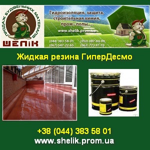 Строительная мастика 2013. Компания «ШЕЛИК» предлагает: Гипердесмо - полиуретановая гидроизоляционная мастика. Гипердесмо - отличная адгезия к любым поверхностям. Мастика наносится на бетон, металл, дерево, камень и др. Монолитное покрытие эластично при Т -50+100 ?С. Гидроизоляция и защита от коррозии. Для наружных и внутренних работ. Банки 1, 6, 25 кг. Цвета в ассортименте. +38(044)3835801 +38(050)0878404 Киев, ул. Бориспольская, 7 www.shelik.prom.ua |