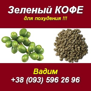Зеленый кофе бесплатная доставка по Украине. ТМ «Кофе-мэн» предлагает: Зеленый кофе - природный сжигатель жира, антиоксидант, иммуностимулятор. Поможет похудеть без диет и голоданий, 100% натуральный, полезный для организма продукт. Зеленый кофе - прорыв в области похудения. Позволяет достичь результатов, немыслимых раньше. Вадим +38(093)5962696 |