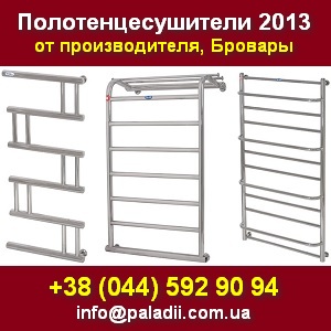 Сантехника 2013 Товары для ванной. Компания «Аквакомфорт» предлагает: Полотенцесушители из нержавеющей итальянской стали от производителя ТМ «Paladii». Полотенцесушители под индивидуальный заказ. Пн-Пт 9.00 - 18.00 Полотенцесушители - доставка по Украине. Отдел продаж изделий из нержавеющей стали на производстве +38(044)5929094 +38(044)3922826 Бровары, ул. Щелковская, 2 info@paladii.com.ua |