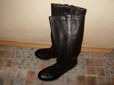 Продам сапоги женские демисезонные, в отличном состоянии! Подошва - "манная каша", танкетка, бежевого цвета. Верх - натуральная кожа черного цвета, внутри - мягкий утеплитель, на "молнии", высота - до середины голени (вшита незаметная резинка). Сапоги очень устойчивые, смотрятся на ноге изящно, неубиваемые ни в дождь, ни в мокрый снег. Производство "Ecco" (Дания). Цена - 600 грн. |