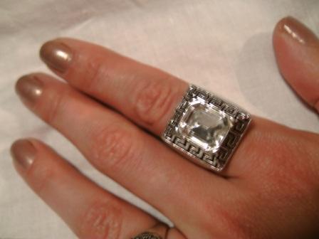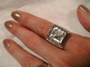 новый шикарный перстень с цирконом (ювелирная бижутерия, покрытие серебром), р. 18. (2х2 см) |