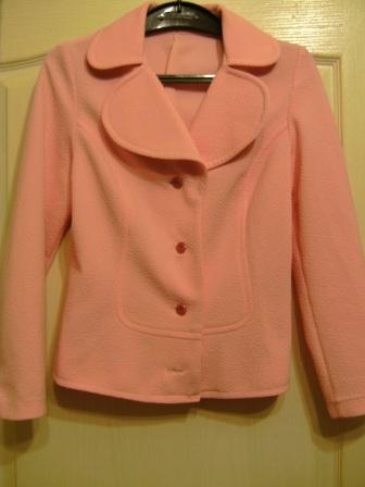 Размер: XS,S красивый, яркий (пастельный розовый) костюмчик из фактурной ткани (название не знаю), без подклада, шит в ателье. состояние отличное. р. 42-44. пиджак: плечи- 37, рукав- 62, пог-47, пот- 39, поб-49, длина- 62 юбка: пот- 32, поб-44, длина-43 |