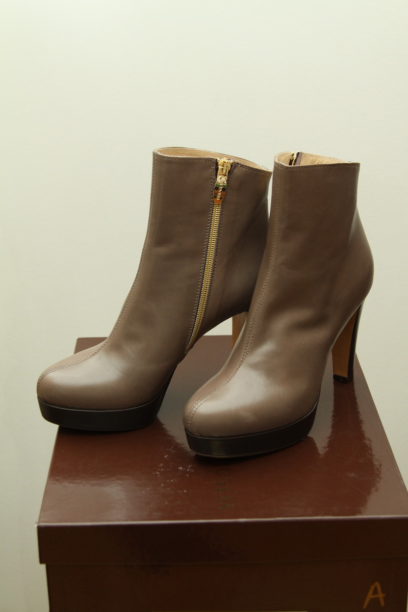 Серо-бежевая кожа, кожаная подошва с резиновой накладкой, каблук 10,5 см., 39 р.. Устойчивые с удобной колодкой и платформой. Оригинал. Прямые поставки с фабрики. Первая цена 450 евро. |
