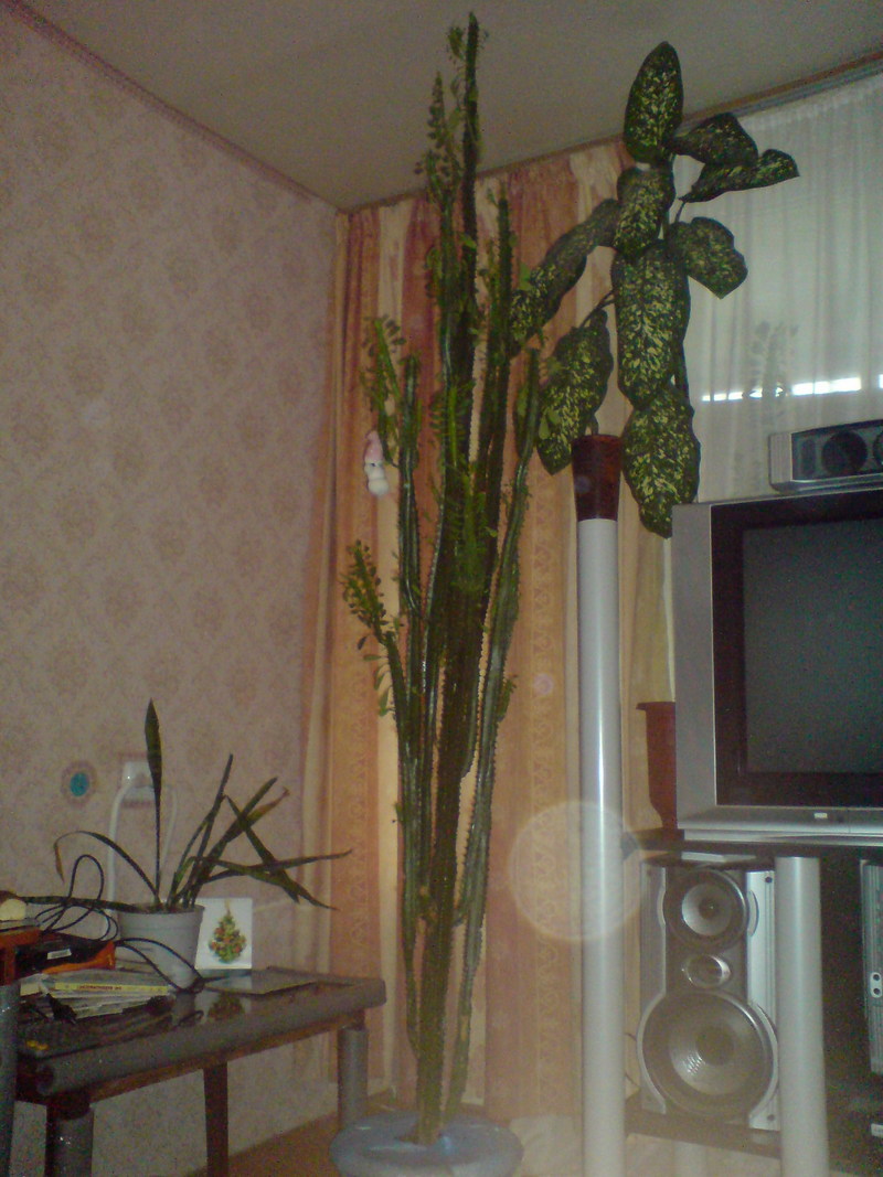 Продам Молочай треугольный 2, 5 м (есть ещё два по 1-1, 5 м) Молочай треугольный Euphorbia trigona - кустистое растение с мясистыми стеблями. Ярко выраженные ребра с мелкими колючками и продолговатыми листьями на верхушках побегов. Корневая система молочая треугольного небольшая, а растение очень высокорослое, поэтому для устойчивости требуется или глубокий горшок с высоким слоем дренажа, или подвязка к опоре.Полив: Умеренный с весны до осени, ограниченный зимой - в промежутках между поливами почве дать подсохнуть. Удобрения: С ранней весны до осени регулярная подкормка кактусовыми удобрениями. |