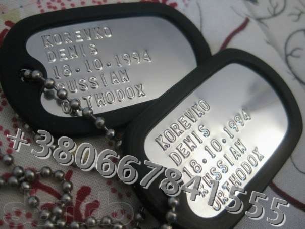 У нас вы можете заказать настоящий (производства США; метал: сплав Номеля) американский армейский жетон( Dog-Tag ) с нанесением текста. Уникальность и эксклюзивность данного жетона состоит в том, что на нем можно выбить любую личную информацию. Отличный подарок себе, другу или коллеге! Готовность в день заказа! Именной жетон DOG-TAG ID TAG FROM USA …В набор входит 2 жетона, резиновая окантовка, и цепочки. СТОИМОСТЬ НАБОРА 160 грн. ВОЗМОЖЕН ЗАКАЗ ПО ВСЕЙ УКРАИНЕ!!! Доставка по Киеву и Украине. ЖДЕМ ВАС!!! … www.shara-market.com.ua 066 784 1 555 Кирилл |