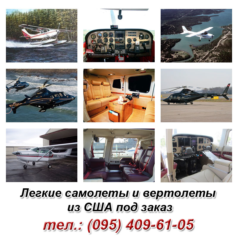 Всем, кого интересует приобретение легкой и сверхлегкой авиации, мы предлагаем помощь в выборе, приобретении, сервисном обслуживании, ремонте, тюнинге и отправке из США частных самолетов и вертолетов. Поможем определиться с моделью, комплектацией, ценой и выбрать максимально подходящий вариант. Также возможна регистрация малой авиации в США с дальнейшим использованием в Украине. Запчасти к самолетам и вертолетам новые и б/у в сжатые сроки.