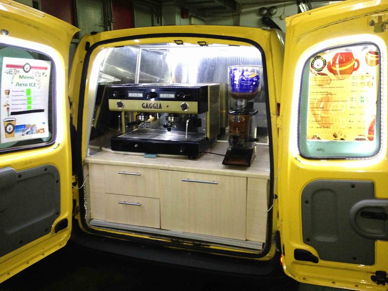 Renault Kangoo 2006 г. 1,5 дизель, состояние машины отличное.Полностью технически обслужен, сменены все расходники, сменены все маслофильтры. Полностью укомплектованная для приготовления кофейных, горячих и др. напитков. оснащено профессиональной двухпостовой кофеваркой GAGGIA с гарантией и профессиональной кофемолкой CUNILL со счётчиком порций. Отделка рабочей зоны пищевой нержавейкой. |