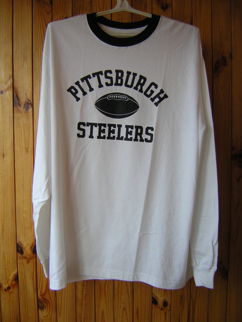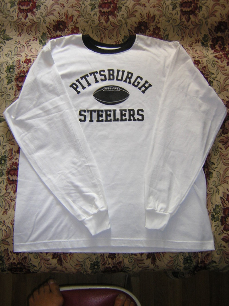 Футболка Reebok (оригинал) белая новая с длинным рукавом. 100% COTTON. С овальной надписью на груди: «PITTSBURGH STEELERS», Очень большой размер. Ширина спинки 66 см., длина – 80 см. |