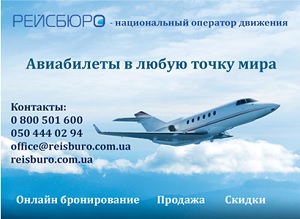 Бронирование авиабилетов онлайн и по телефону. Онлайн сервис РЕЙСБЮРО предлагает: Заказ и бронирование авиабилетов, автобусных и ж/д билетов; оформление туристического стра хового полиса; пополнение счета роуминг операторов. Забронировать авиабилет на нашем сайте можно круглосуточно, а главное, быстро и удобно! Всегда рады Вам помочь 0 800 501 600 +38(050)4440294 Киев, ул. Спасская, 31-Б |