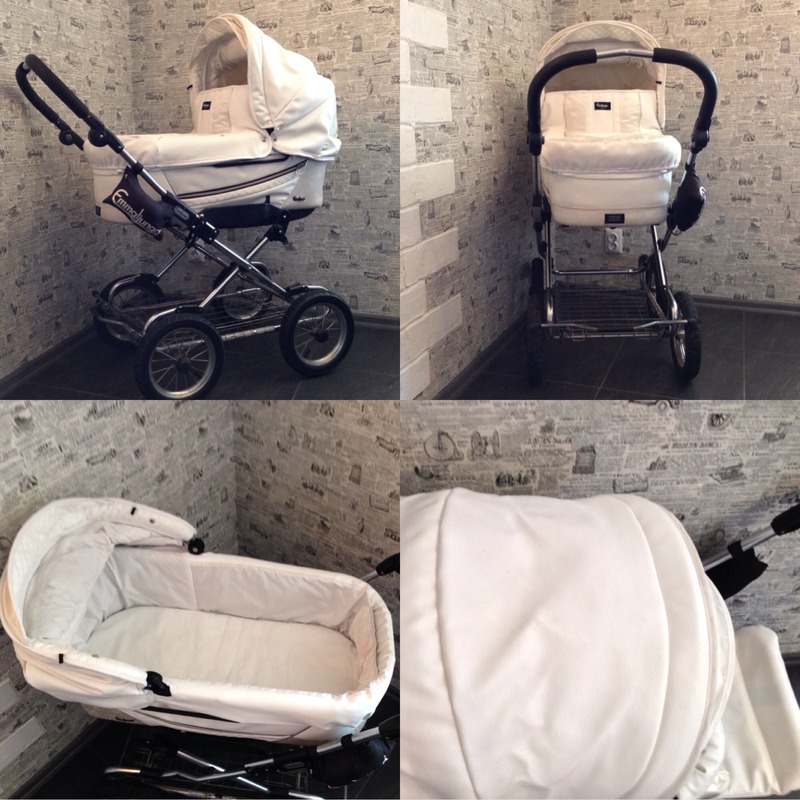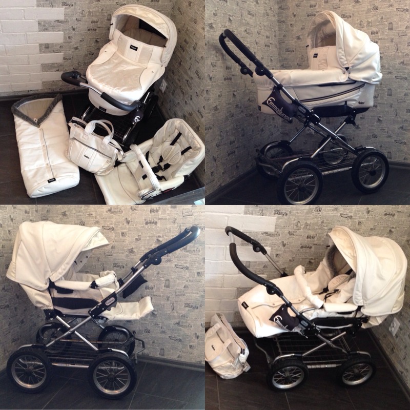 Продам нашу шикарную и эксклюзивную коляску в идеальном состоянии!!Наш вариант отличается от серийных моделей,сочетанием шелка с белой эко кожей!Праздничная СЕРИЯ EMMALJUNGA Celebration посвящена 85 летию торговой марки, поэтому выпустились коляски в ограниченном количестве, всего выпущено 1000 колясок.