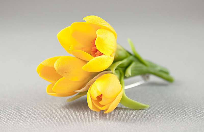 Материал: холодный фарфор Цвет: желтый В комплекте: брошь в виде букетика желтых крокусов размером 6 см Технология: лепка из холодного фарфора |