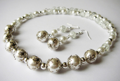 Материал: хрустальные бусины Цвет: серебряно-белый В комплекте: ожерелье 52 см и серьги 6 см из хрустальных и стеклянных бусин Технология: бижутерия |