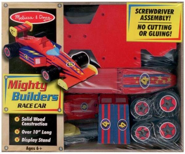Конструктор "Гоночный автомобиль" Замечательный обучающий и познавательный подарок для детей в возрасте старше шести лет – оригинальный деревянный конструктор «Гоночный автомобиль» Melissa&Doug станет приятным сюрпризом для Вашего сына. Этот игровой набор примечателен тем, что он не требует никакого склеивания, обрезания деталей и другой не слишком чистой работы – все детали очень просто соединяются с помощью специальной отвертки, входящей в комплект.