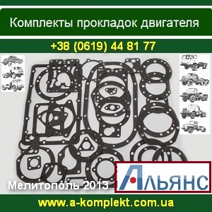 Прокладки 2013-2014 для двигателей. Украина Ремкомплекы РТИ от производителя ТМ Альянс: Изготовление прокладок под заказ от 1 шт. прокладки двигателей Д-21, А-41, А-01, КамАЗ, ГАЗ-53 прокладки двигателей Д-240, Д-245, Д-260, Д-160, Д-65, Д-144 прокладки двигателей ЗИЛ-130, КрАЗ, Урал, МАЗ паронит, кожкартон, резинопробка. Форма оплаты любая. Прокладки двигателей доставка по Украине и СНГ. Артем +38(0619)448177 Мелитополь, ул. Зиндельса, 17 www.a-komplekt.com.ua |