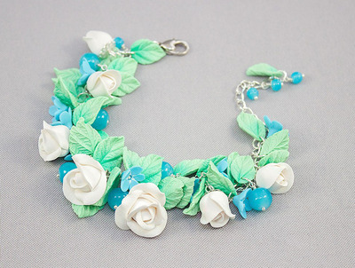 Материал: полимерная глина, бусины Цвет: мятно-белый В комплекте: женский браслет с полимерной глины, металлической фурнитуры и стекляных бусин. Размер регулируется Технология: лепка из полимерной глины |