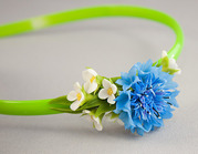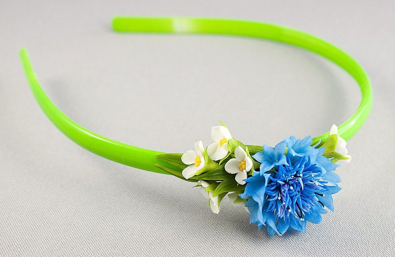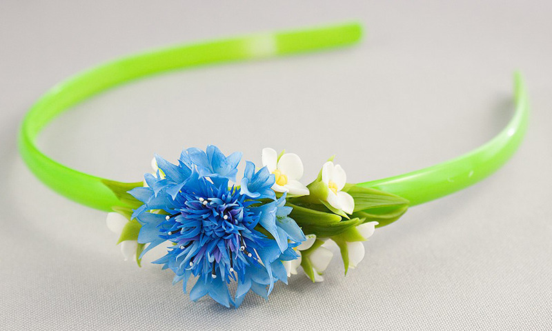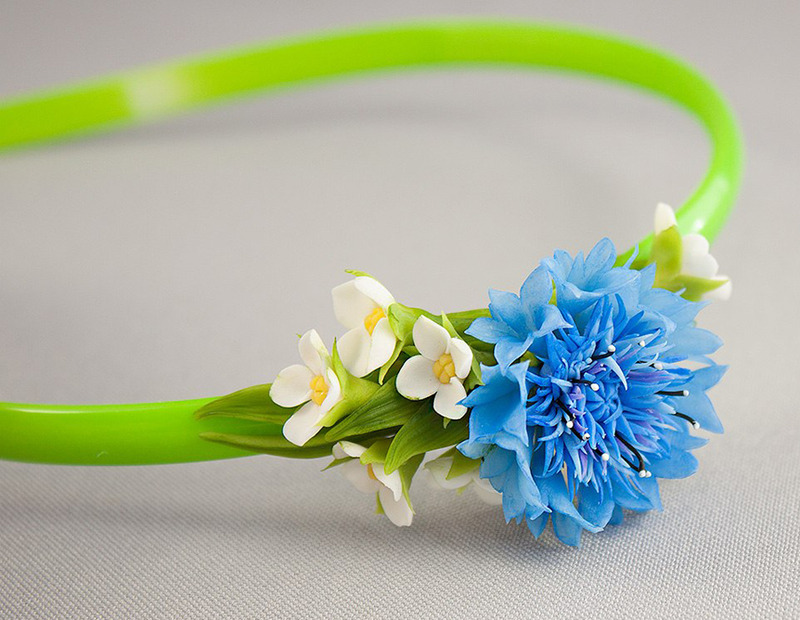 Материал: холодный фарфор Цвет: салатово-голубой В комплекте: женский обруч с цветочной композицией с холодного фарфора Технология: лепка из холодного фарфора |