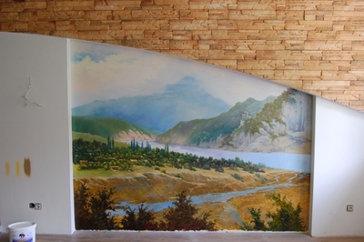 Тенденция украшать свое жилье зародилась еще во времена первобытных людей, когда на стенах с помощью камня увековечивались всевозможные сцены из жизни народов того времени: будь-то охота, повседневная жизнь или просто изображение животных. Сегодня художественная роспись стен представляет куда более сложный процесс, предполагающий наличие определенных навыков и умений. Для художественной росписи используется темпера различного состава. Эта краска примечательна тем, что не требует придерживаться какого-то определенного стиля в рисунке, как говорится, полная свобода полета фантазии. По своему происхождению слово «темпера» относится к итальянскому языку и означает некое смешение более, чем трех составляющих. В XV веке яичная темпера была самым популярным средством для художественнойросписи стен. Что же касается нынешнего века, то в лидеры вышла темпера на основании искусственной эмульсии. Если проводить параллель, то современная темпера значительно долговечнее, чем ее средневековый аналог.