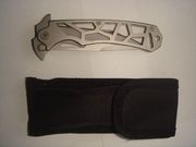 Общая длина, мм: 190 Длина рукояти, мм: 117 Материал лезвия: 440 C Твёрдость стали: 48-56 HRC Материал рукояти: металл Материал чехла: да Товар абсолютно новый! |