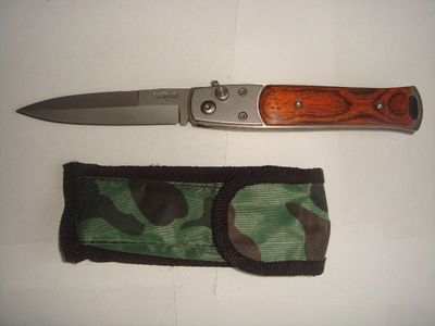 Нож GRAND WAY 7121 Общая длина, мм: 200 Длина рукояти, мм: 120 Материал лезвия: 440 C Твёрдость стали: 48-56 HRC Материал рукояти: металл Материал чехла: да Товар абсолютно новый! |