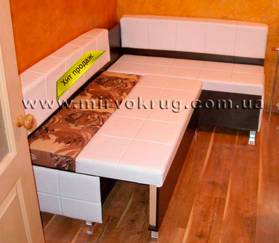 Раскладные кухонные диваны со спальным местом очень удобны и практичны в наше время. Кухонный уголок со спальным местом незаменим когда необходимо кого-то уложить спать, а места в квартире больше нет. Приемлемые цены и хорошее качество. Изготовление всего 2-4 недели. Угол кухонного дивана может быть "Г" или "7". Все модели есть на сайте mirvokrug.com.ua там много фото. Возможно изминение размеров и цвета обивочного кожзаменителя. |
