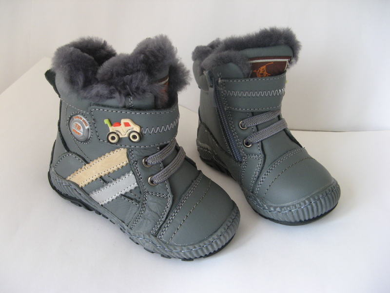 Цвет – синий. Снаружи. – кожа, внутри – цигейка. Боковая молния. Утепленная и уплотненная стелька Две липучки для регуляции полноты ножки. Резиновая защита носка и пятки. Высокая, ребристая подошва.