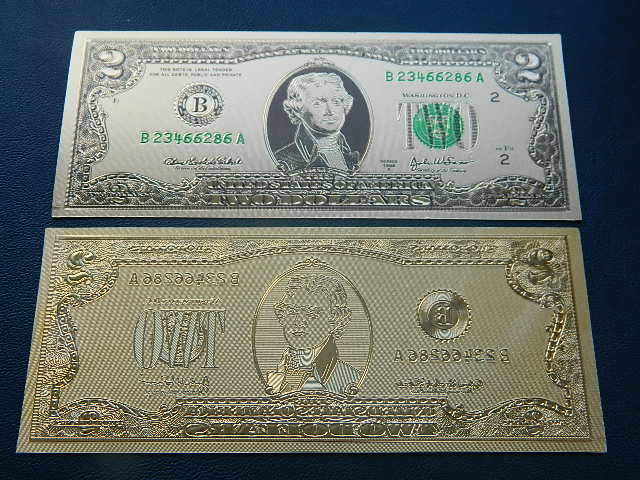 «Золотая банкнота» - это уникальный подарок, которому будет рад любой деловой человек. Она может стать своего рода талисманом на удачу и процветание, а возможно, для кого-то началом для накопления целого состояния. Вы сможете приятно порадовать коллегу по работе, начальника или делового партнёра, подарив ему золотую банкноту номиналом 100 $ или 2 $ - на Новый Год, с Днем Рождения