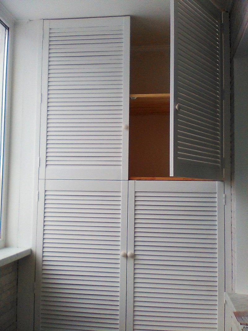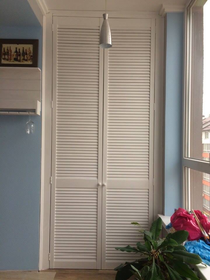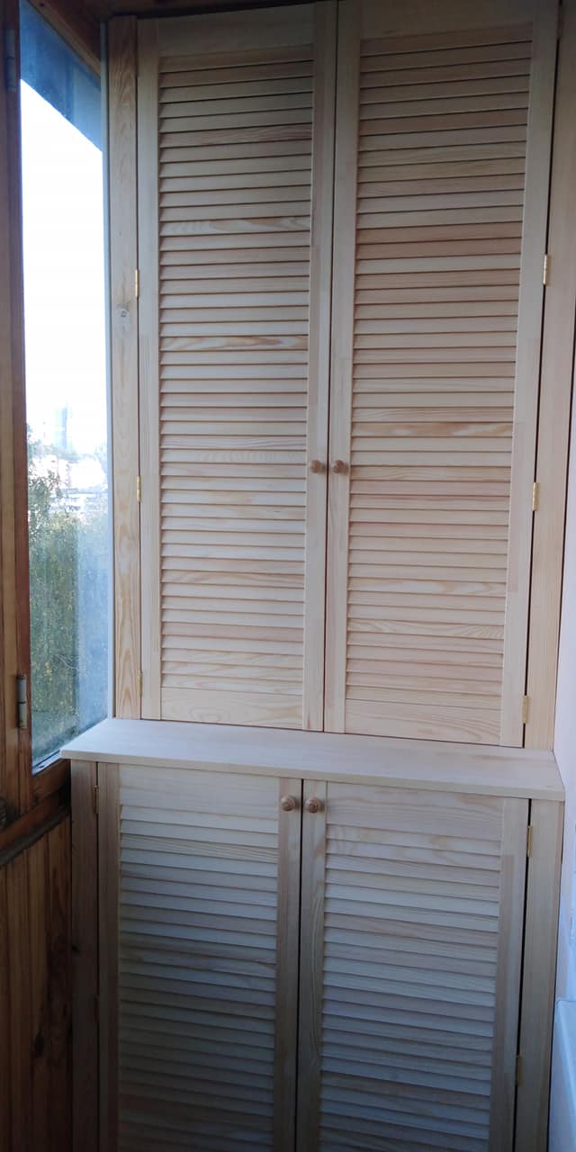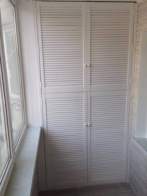 шкаф на балкон из Дверей Жалюзи, подбор дверей по размеру в разных комбинациях по высоте и ширине а также все сопутствующие столярные работы |