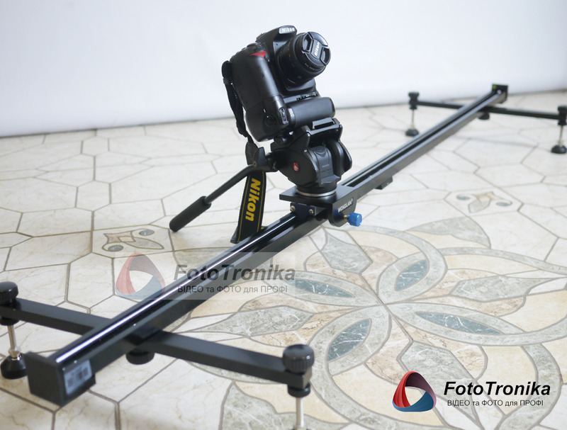 Слайдер располагается на четырех регулируемых опорах и может ставиться также и в ВЕРТИКАЛЬНОЕ положение. Ноги могут быть установлены в различных позициях в соответствии с необходимостью (вертикальным, горизонтальным и при наклонном скольжении). 1/4 дюймовые и 3/8 дюймовые крепежные отверстия расположены в центре и с обеих сторон слайдера для штатива.
