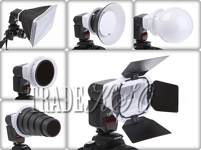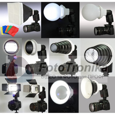 Набор невероятно популярен среди фотографов снимающих на пленере с портативными вспышками установленными на стойках! При помощи одного коплекта насадок фотограф может перекрыть весь диапазон своих творчесских потребностей. Теперь незачем с собой носить большое колличество неудобных и громоздких рассеивателей - все это теперь есть в копактном наборе который подойдет как для любителей? так и профессионалов своего дела.