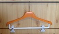 Пластиковые тремпели с металлическим вращающимся крючком. Цвет оранжевый . Размер 40 см. Цена 3 грн. С вставкой с прищепками для брюк и юбок - цена 3,5 грн. Новые. |