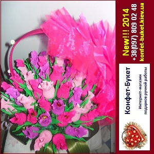 Студия букетов из конфет предлагает: Оригинальные Сладкие подарки: Букеты, торты, валентинки. Сладкие подарки широкий ассортимент. Композиции из шоколадных конфет высокого качества. Сладкий и ароматный букет сластенам и любителям необычных подарков. Состав сладких подарков - конфеты «Рошен», «АВК», «Конти», «Ж.Л.». Стоимость букета от 50 грн. Срок изготовления 1-3 дня. Виктория +38(097)8090248 Киев, ул. Тычины, 3 www.konfet-buket.kiev.ua |