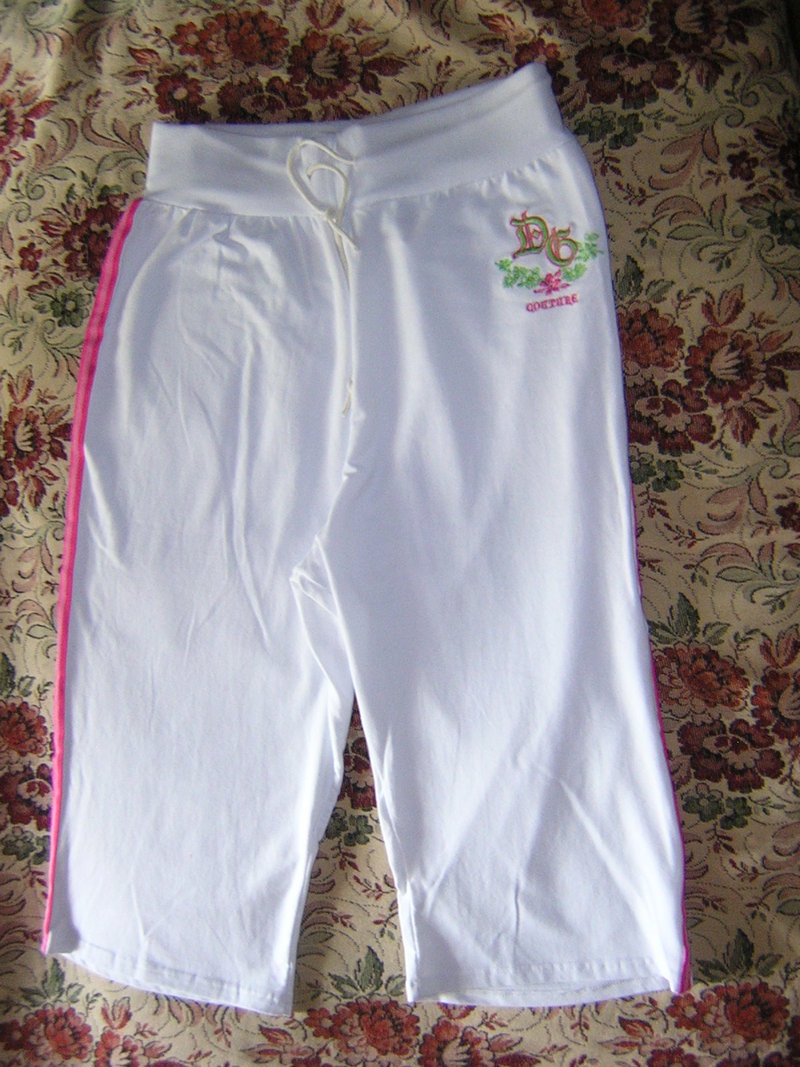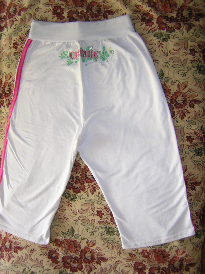 Бриджи белые, новые. 95 % - cotton, 5% - spandex. Размер 54-56 с цветной вышивкой. |