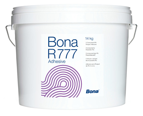 Bona R777 — двухкомпонентный реактивный полиуретановый клей, соответствующий требованиям стандарта Германии DIN 281. Клей не содержит ни воды, ни органических растворителей. Затвердевает в процессе химической реакции, безусадочно, не оказывая влияния на древесину. Клей может применяться для приклеивания всех без исключения видов паркета и ламинированных покрытий к основанию.