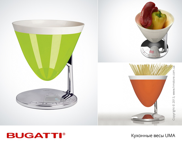 Кухонные весы Bugatti UMA просто обязаны быть в арсенале вашей бытовой техники, так как один предмет может выполнять сразу несколько действий: электронные кухонные весы и таймер.