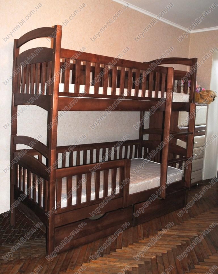 Кровать двухъярусная с ящиками, нижними перегородками и ортопедическими матрасами (цвет ольха, орех): 4000 грн.