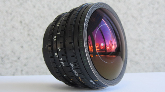 ОБЪЕКТИВ МС ПЕЛЕНГ 3,5/8 "FISHEYE" - уникальный сверх широкоугольный объектив "рыбий глаз" получил свое название благодаря большому углу поля зрение-180гр. Именно под таким углом глаз рыбы наблюдает из воды предметы,расположенные над поверхностью её поверхностью.Он отличается высоким качеством изображения и способностью передавать мелкие детали объекта.Изменяя привычные пропорции предметов, объектив позволяет достичь весьма необычных и впечатляющих изобразительных эффектов.