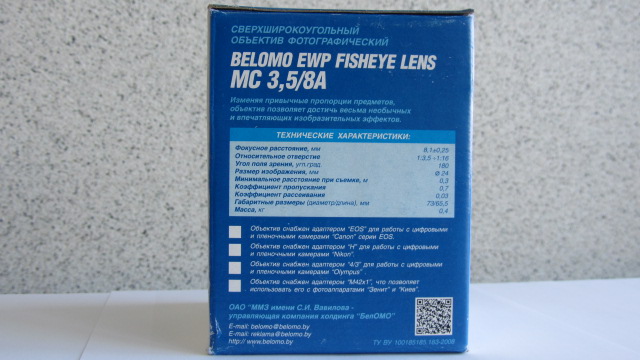"BELOMO EWP FISHEYE LENS MC 3,5/8А" на Canon EOS