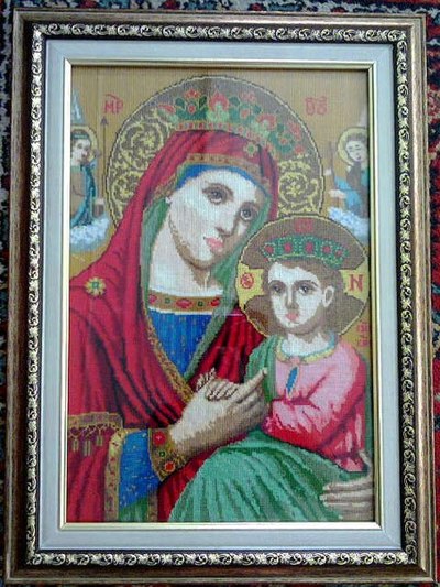 Отличный подарок. Картина размером 38,5х52,2 (28,4х42). 43092 крестиков. 47 цветов. нитки мулине и люрекс. Вышита на белой канве. Бликоотражающий пластик. |