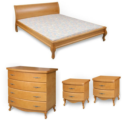 Данная модель спальни изготовлена для настоящих ценителей деревянной мебели в классическом стиле по достаточно скромной цене. В комплект спального гарнитура входит кровать 140-160-180 см по ширине и 200 см по длине. Цена – 7900 грн. Тумбочки прикроватные 480х450х500 мм – 2700 грн. Комод 800х500х1000 мм – 8000 грн. Все эти элементы спального гарнитура Вы можете приобрести отдельно. Цвет тонировки дерева на выбор: Белый, Ольха, Бук, Груша, Каштан, Дуб, Клён, Махагон, Орех, Красное дерево, Венге. Срок поставки – до двух недель. На meblilove.com вся подробная и актуальная информация по этой мебели. Доставка во все регионы |