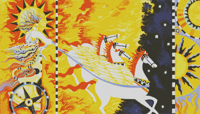 Готовое художественное мозаичное панно матричного типа для использования в интерьерных (экстерьерных) дизайн-проектах. Материал – стекломозаика 10*10 мм. Ширина панно – 4,47 м. Высота – 2,55 м. Площадь – 11,4 кв.м. Цена – 3500 $. Тел. (063)2709012. Фото на сайте: m2f.org |