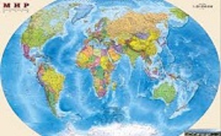Политическую карту мира с разрешением 2880 dpi высота 157см ширина 248см, две части 101см х 157см и одна часть 46см х 157см. Карта мира напечатанная на натуральном холсте и свернутая в рулон. Один недостаток – на стыках между частями будут видны белые линии – 500 грн