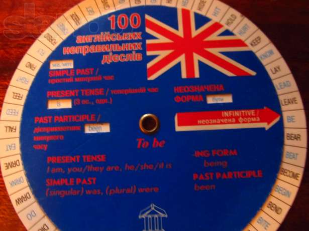 картонный диск (диаметр 10 см) с расположением 100 английских неправильных глаголов с 3-мя их формами и русским переводом. Одним поворотом верхней части диска Вы сможете одновременно видеть 3 формы английского глагола и русский перевод. Теперь Вым не надо будет использовать большие и неудобные распечатанные листы и Вы легко сможете изучать глаголы как дома так и в транспорте. На диске также расположены глаголы,к оторые не меняют форму в простом прошедшем времени. |