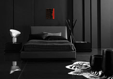 Объемная часть картины, выполненная в черном цвете, олицетворяет взлеты (подчеркнутые блеском мозаики) и падения, переплетения, страсти, сложности человеческих судеб. И всё это происходит на фоне основы всего и вся - любви, выраженной автором в красном цвете на ровной части картины.