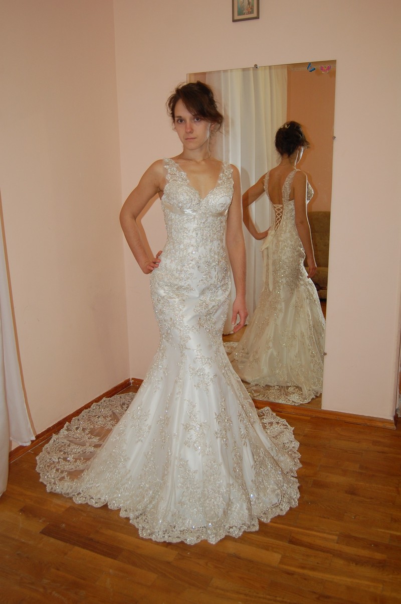 В связи с переносом свадьбы на следующий год, продаю новое свадебное платье ручной работы. Французский гепюр. Размер 44-46. Рост 166-170. 7000 грн, возможен хороший торг (покупалось за 10000). Телефон: 093 763 24 56 |