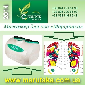 Здоровье и красота 2014. Массаж и лечение. Массаж стоп акупунктурный. «КлабСанте» Украина предлагает: Лечебный аппарат для массажа стоп Марутака MARUTAKA (Япония): Снимает стресс и головную боль. Снимает боль и отеки в ногах. Улучшает кровообращение. Нормализует давление. Повышает иммунитет. Лечит варикоз. Улучшает сон. Доставка по Украине. +38(044)2216495 +38(098)5468546 +38(095)2268503 Киев, ул. Чистяковская, 2А www.marutaka.com.ua |