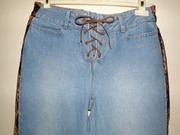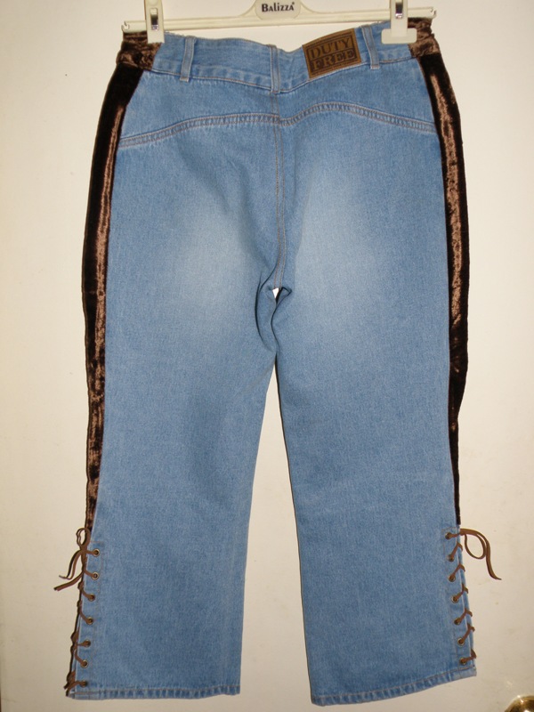 Продам джинсовые капри р.М с бархатными вставками-лампасами по бокам,покупались в Германии. Состояние идеальное,ПОТ-42см, ПОБ-55см, длина 87см, длина по внутр.шву 62см,ширина штанины в бедре 31см, шир. штанины 23см |