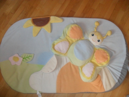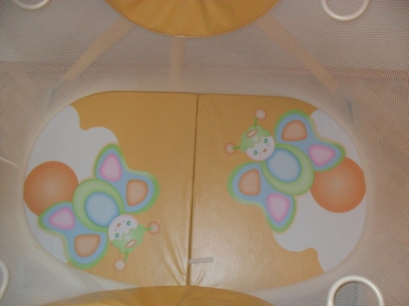 Манеж в отличном состоянии, коврик стирается в машинке. Очень устойчивый и глубокий. Коврик в манеже имеет внутри паралон, можно положить его на пол и ребенок не замерзнет, когда будет играть на полу. Малышу будет очень интересно, так как на коврике есть зеркальце и бабочка, которая поет и «хрустит».