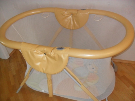 - основание и борта манежа обиты мягкой тканью, которая легко моется;